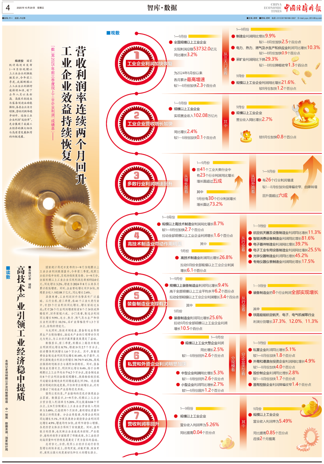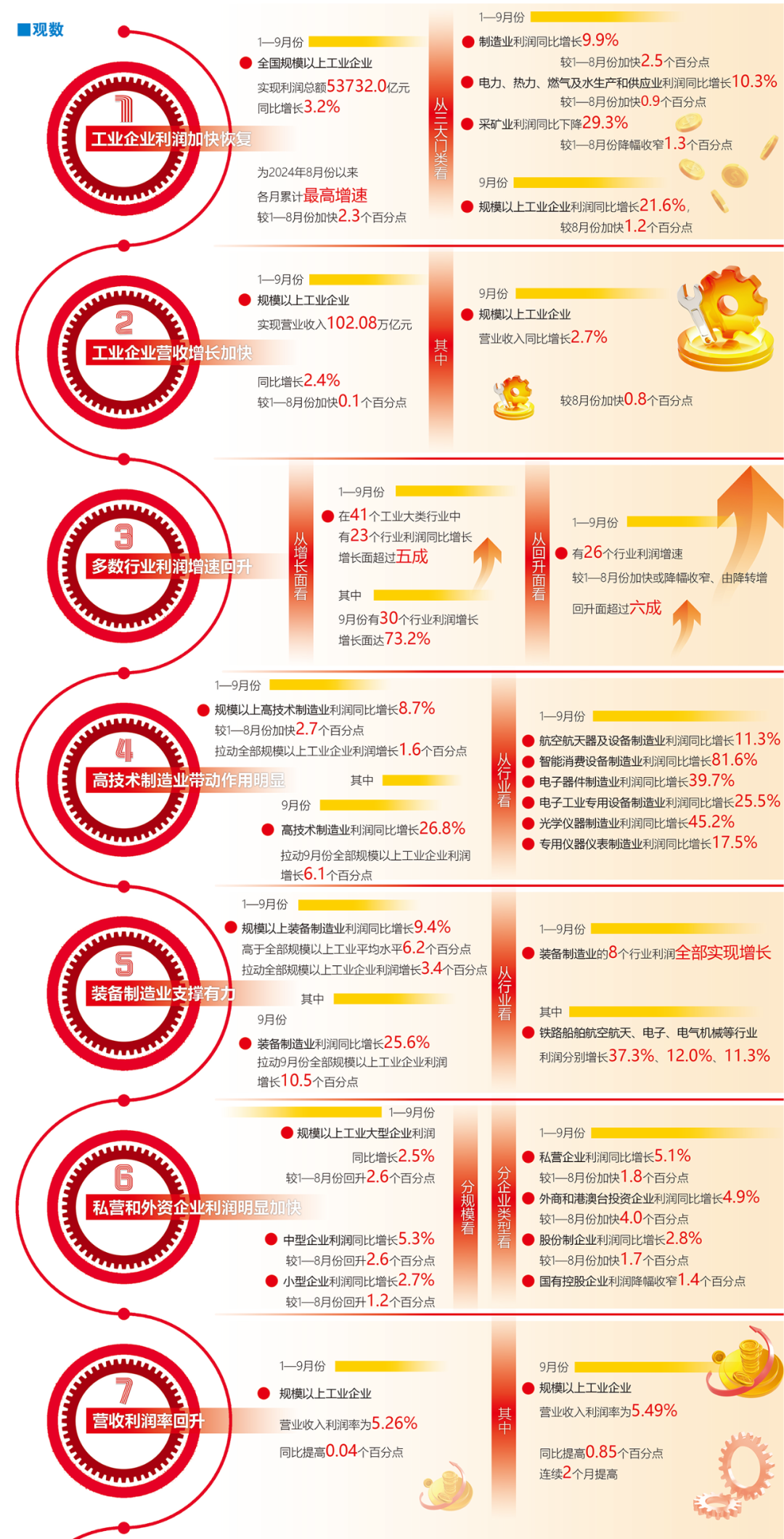 国度统计局近日发布1—9月份边界以上工业企业利润数据清晰,本年前三季度,我国边界以上工业企业利润增速握续加速,创下客岁八月以来新高。高技艺制造业与装备制造业动能建壮,各样企业活力增强,营收利润率稳步回升。这份工业企业利润“获利单”,充分展现了我国工业经济的建壮韧性与高质料发展获取的积极施展。